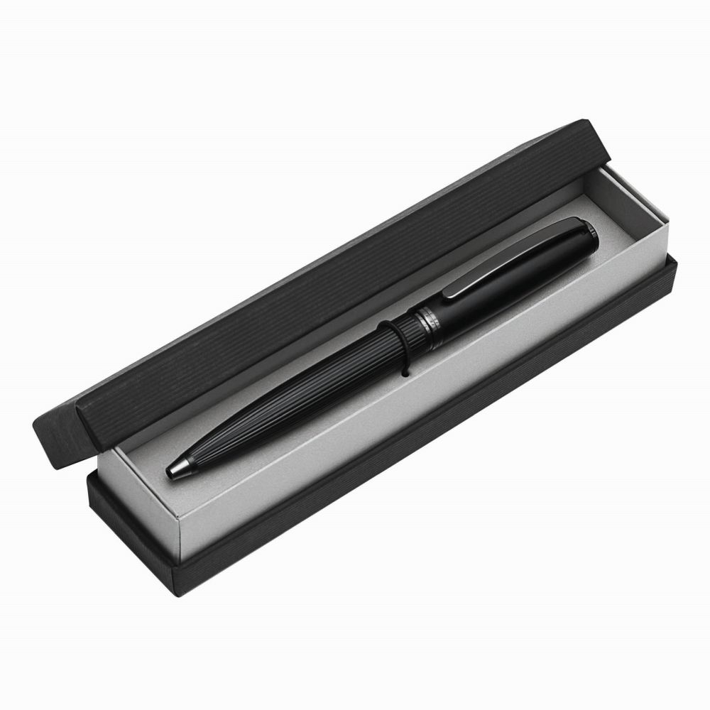 PLUMO Kovová propiska s otočným mechanismem v dárkové krabičce, modrá náplň, černá