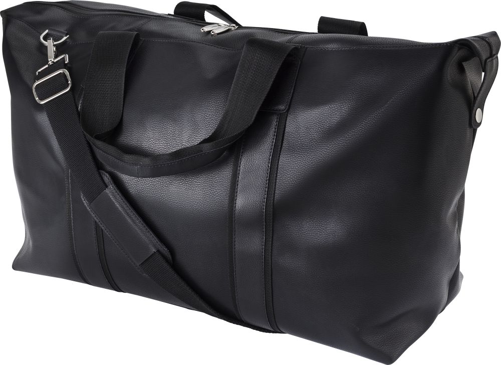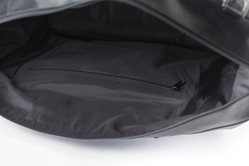 Kožená sportovní taška na zip. Taška má uvnitř malý oddíl na zip. Taška má dvě krátká ucha z kůže a nylonu a jeden nylonový nastavitelný popruh na rameno. Rozměry: 50 x 22 x 40 cm