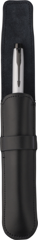 Kožené (2-vrstvé) pouzdro na pero s klopou a zapínáním ve stylu pásku. Má měkký sametový vnitřek. Jednotlivě baleno v černém kartonovém obalu. Hovězí kůže. Rozměry: 15 x 4 x 0,5 cm