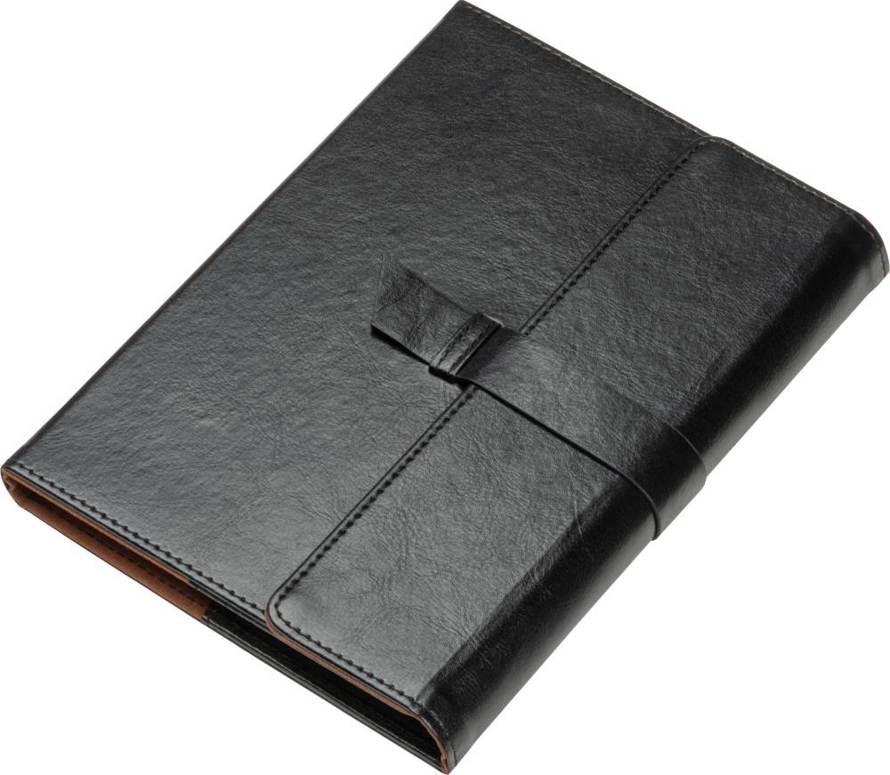 Koženkový sešit A5 se 160 řádkovými stránkami, záložkou se stuhou a poutkem na pero nebo USB. Rozměry: 15,2 x 2 x 22 cm