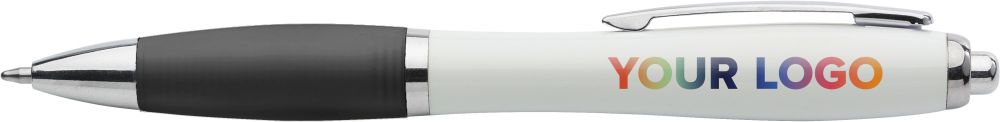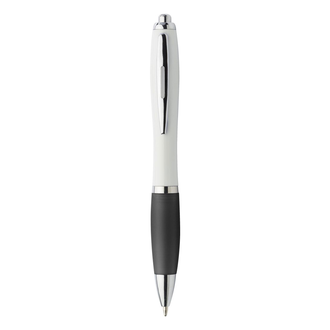 Plastové kuličkové pero s pogumovanou rukojetí a modrou náplní. Vyrobeno z recyklovaného plastu ABS. Rozměry: O 1.36 cm