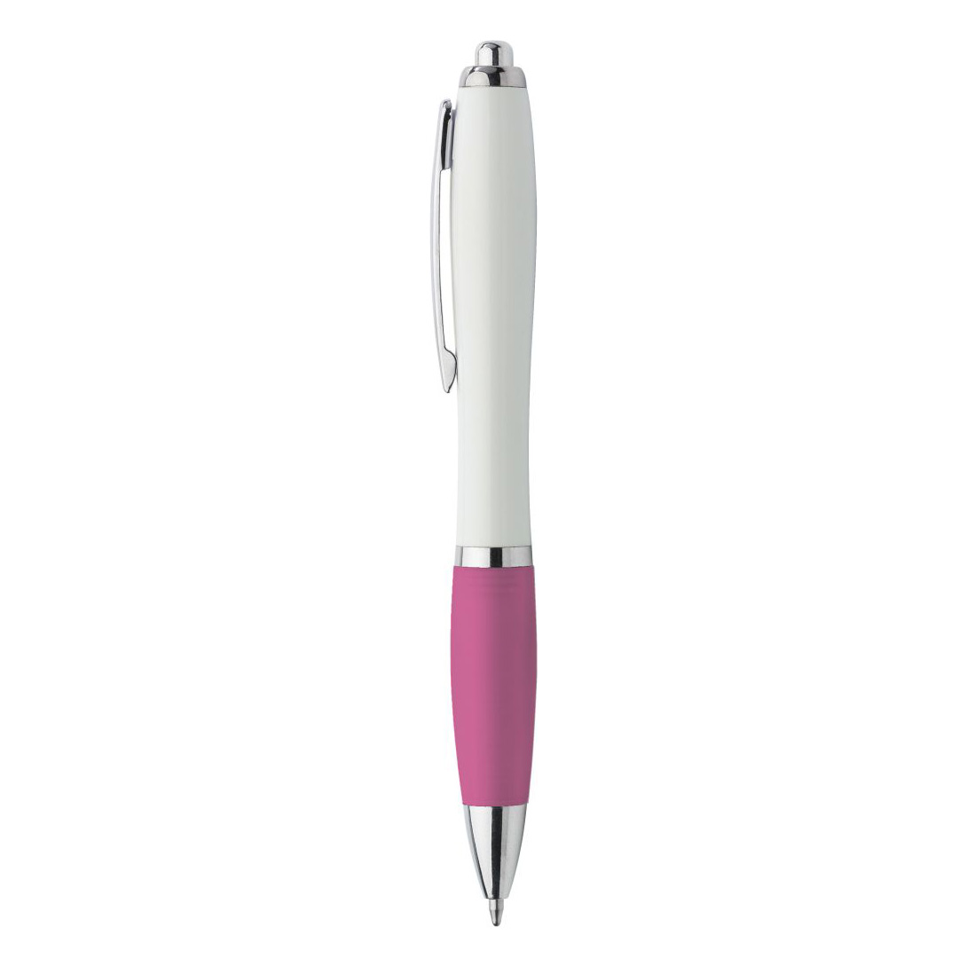 KP s modrou náplní, recyklovaný plast, bílé s růžovým úchopem