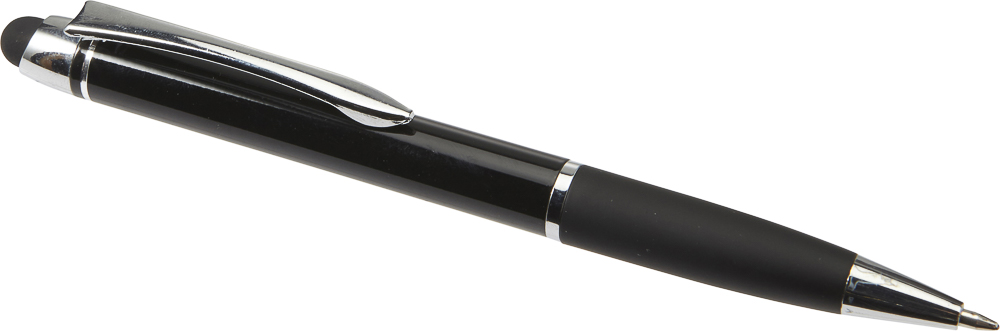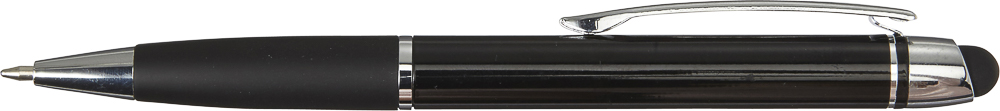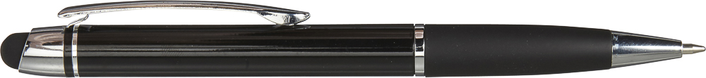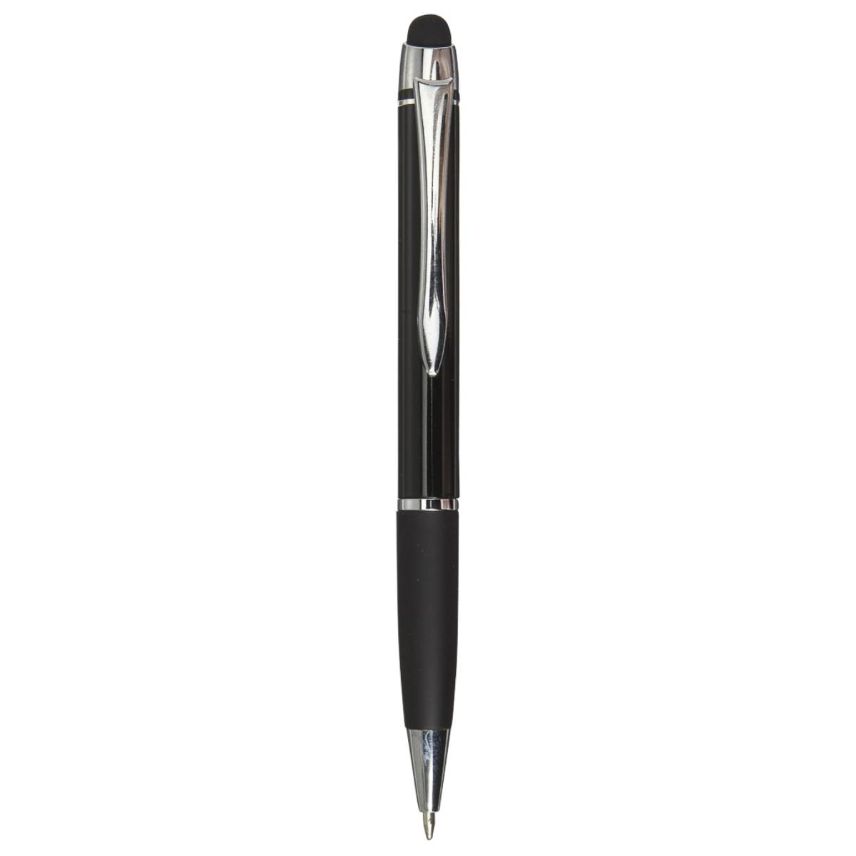 Lesklé kuličkové pero s barevně odpovídajícím gumovým úchopem, se stylusem, se stříbrnými detaily, modrá náplň. Materiál: ABS / hliník. Rozměry: o 1,1 x 14 cm