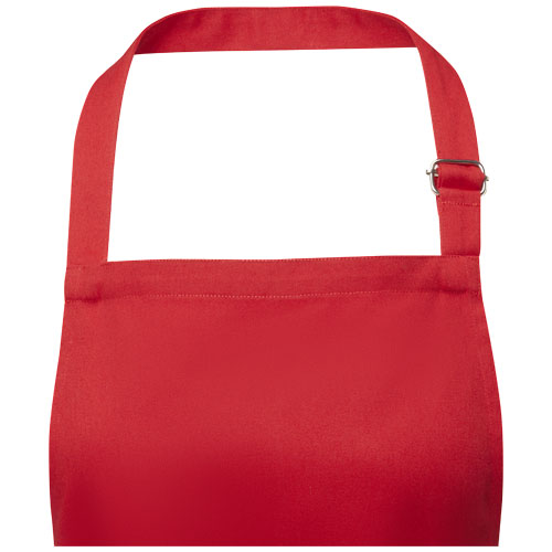 Ochrana krásného oblečení při vaření je s touto zástěrou snadná. Zástěra se skládá z kepru o gramáži 240 g/m2 (65 % polyester a 35 % bavlna), díky čemuž je silná a pevná a zároveň měkká a pohodlná na nošení. Dvě přední kapsy nabízejí rychlý a snadný způsob uložení kuchyňských potřeb. Zástěra je nastavitelná pomocí spony kolem krku a zadního zapínání, takže je univerzální pro všechny velikosti.
