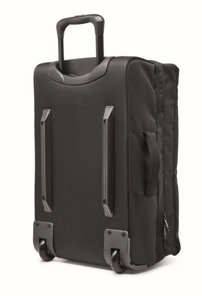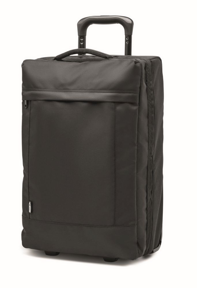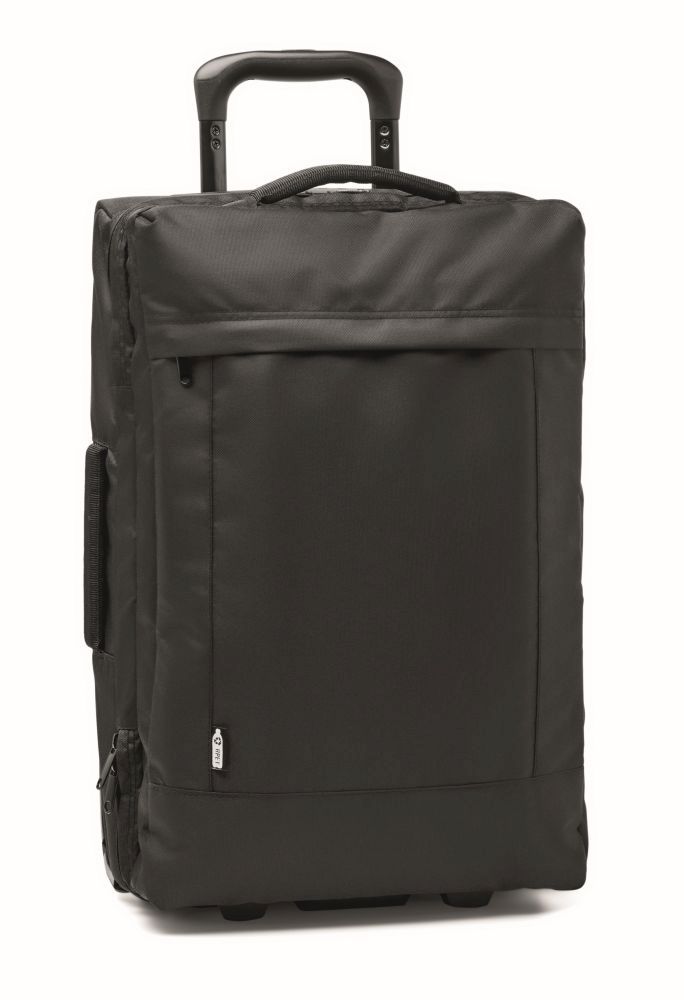 Kufr na 2 kolečkách z polyesteru 600D RPET. Dvě velká vnitřní oddělení na zip. Jedna přední kapsa na zip a horní a boční držadlo. Včetně kódového zámku a dvojitého trubkového rámu. Rozměry: 51x33x23cm