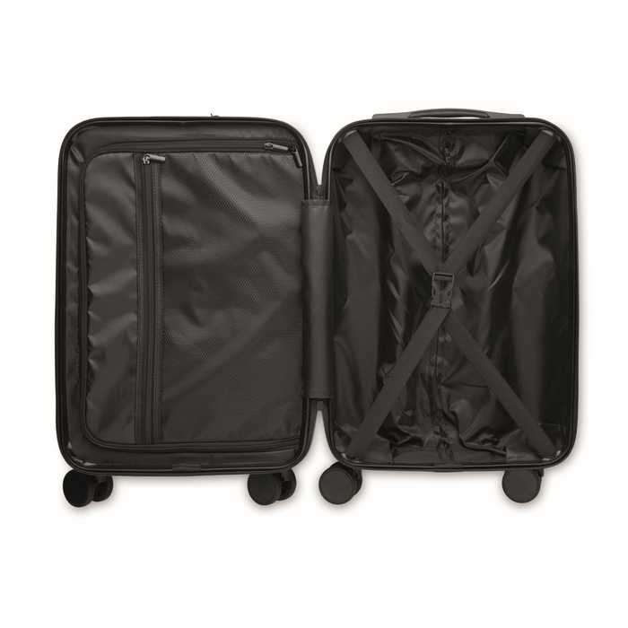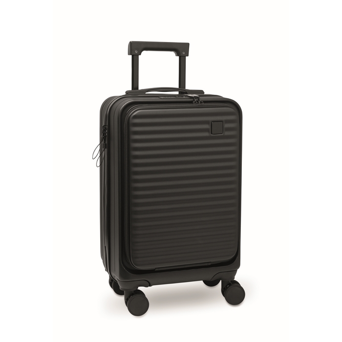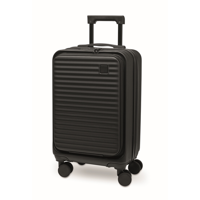 Kufr na kolečkách z pevné skořepiny z ABS. Jedna hlavní a další přední přihrádka na zip a polstrovaná přihrádka na 15 notebook. Součástí je bezpečnostní zámek (TSA). 4 kolečka.Rozměry: 33,5 x 23,5 x 56,5cm