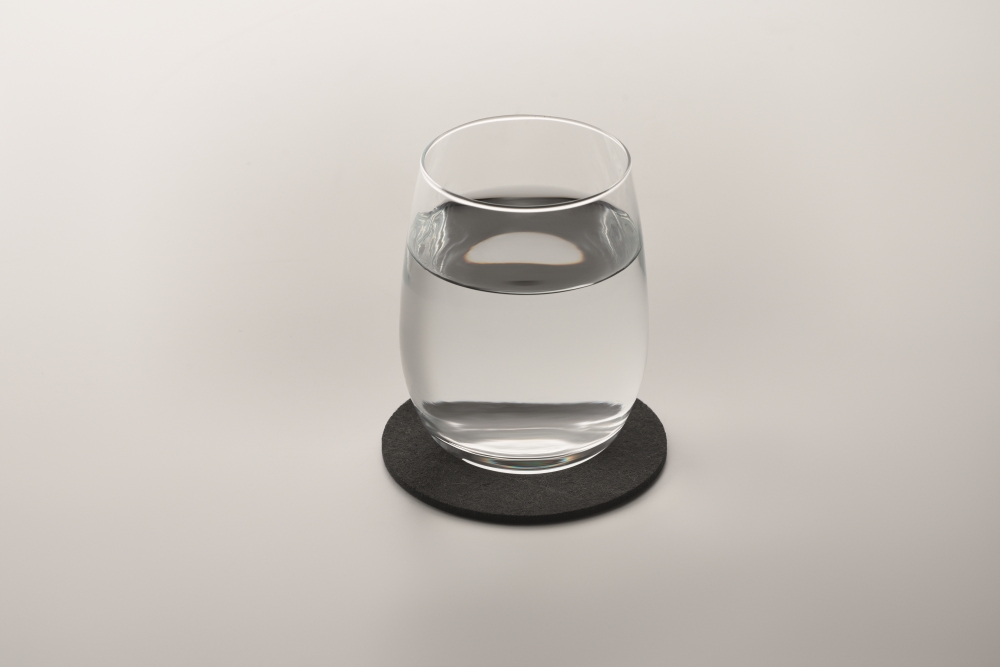 Kulatý podtácek z RPET plsti. Rozměry: O 10 x 0,2 cm. Materiál: recyklovaná plsť