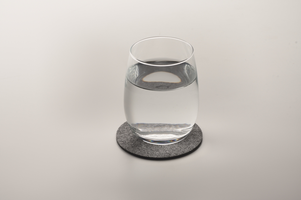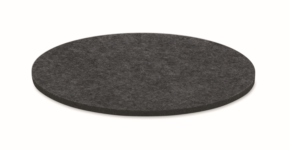 Kulatý podtácek z RPET plsti. Rozměry: O 10 x 0,2 cm. Materiál: recyklovaná plsť