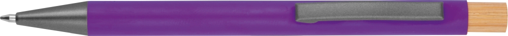 Kuličkové pero z recyklovaného hliníku s kovovým klipem, bambusovým tlačítkem a modrou náplní. Rozměry: O 1 × 14,2 cm.