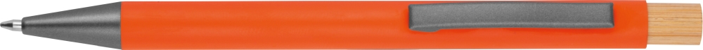 Kuličkové pero z recyklovaného hliníku s kovovým klipem, bambusovým tlačítkem a modrou náplní. Rozměry: O 1 × 14,2 cm.