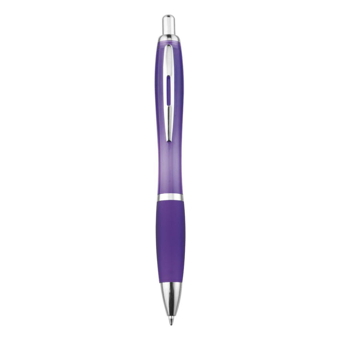 Kuličkové pero s pogumovaným úchopem a modrou náplní z recyklovaného plastu, fialové