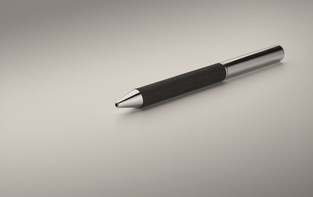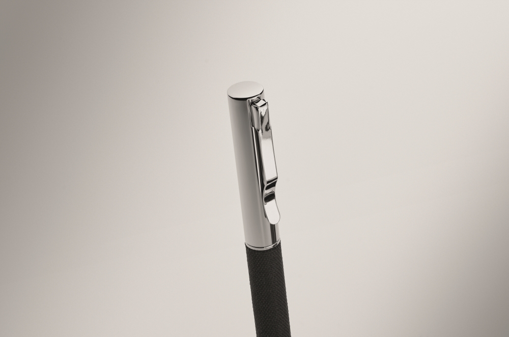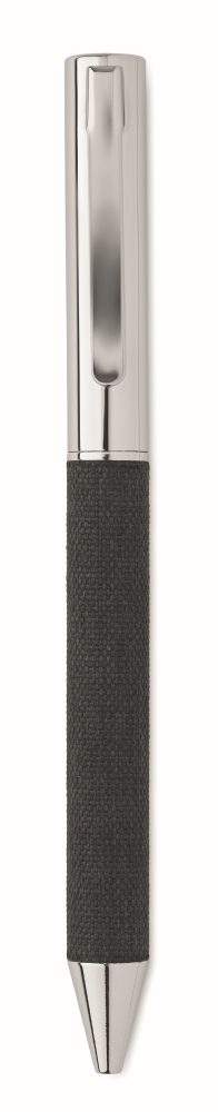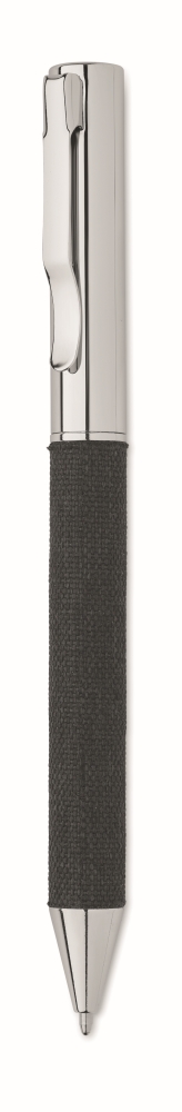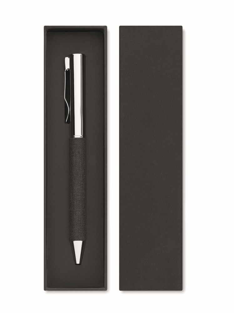 Kovové kuličkové otočné pero s RPET polyesterovým detailem v dárkové krabičce. Modrý inkoust. Rozměry: 19,8 x 4,3 x 2,2 cm. Materiál: nerezová ocel