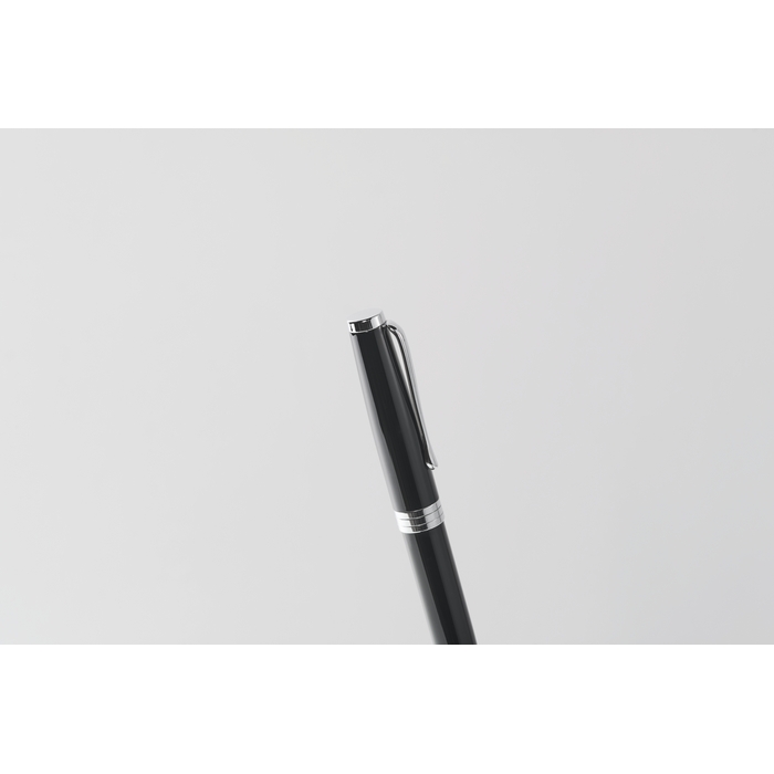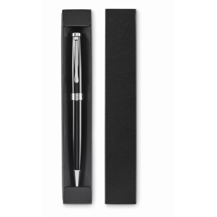 Kuličkové pero s tělem z recyklované nerezové oceli. Modrý inkoust. Dodáváno v černé dárkové krabičce.Rozměry: 17,5 x 2,8 x 2,2cm