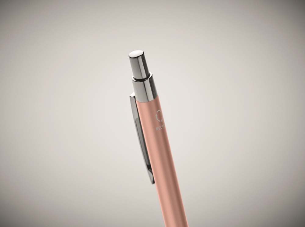 Kuličkové pero z recyklovaného hliníku, s modrou náplní, světlá růžová