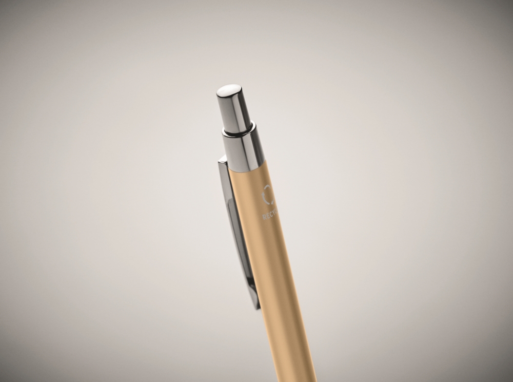 Kuličkové pero z recyklovaného hliníku, s modrou náplní, zlatá