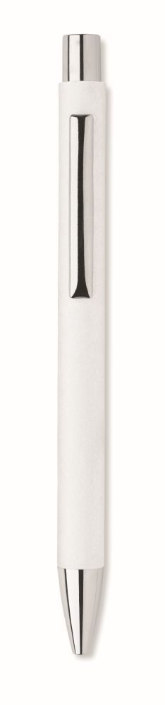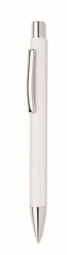 Kuličkové pero z recyklovaného papíru s kovovými detaily, modrá n., bílé