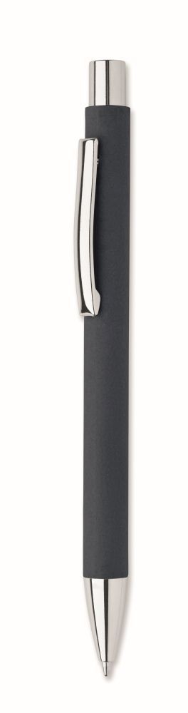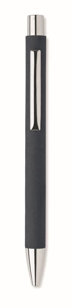 Tlačítkové kuličkové pero z recyklovaného papíru a s kováním. Modrý inkoust. Rozměry: O1,1x14 cm