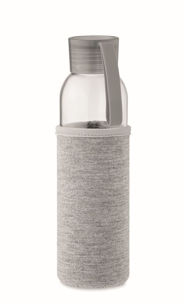 Láhev na pití z recyklovaného skla, neoprenový rukáv, 500ml, šedá