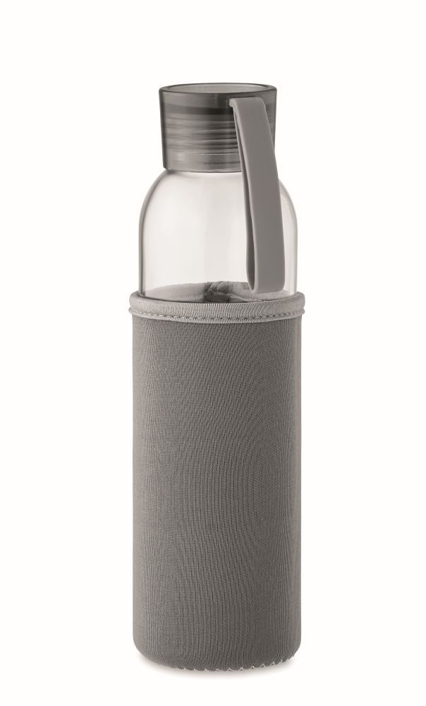 Láhev na pití z recyklovaného skla, neoprenový rukáv, 500ml, tmavě šedá