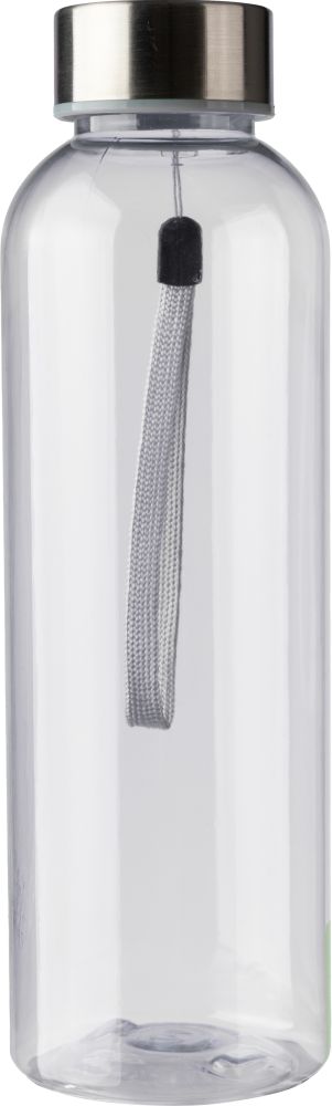 Láhev na pití z recyklovaného plastu o objemu 500 ml s nerezovým víčkem a poutkem na zápěstí. Rozměry: O 6,3 × 20,6 cm. Poznámka: Možnost i celoplošného potisku.