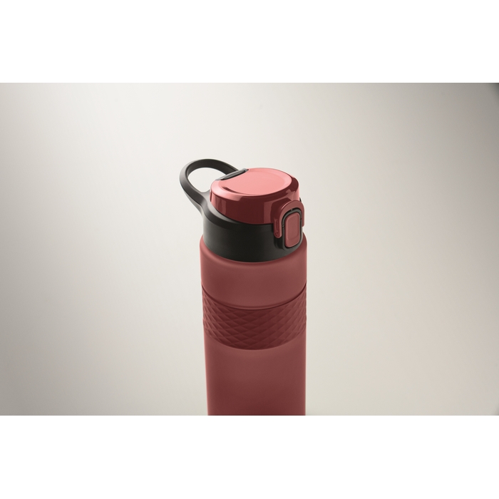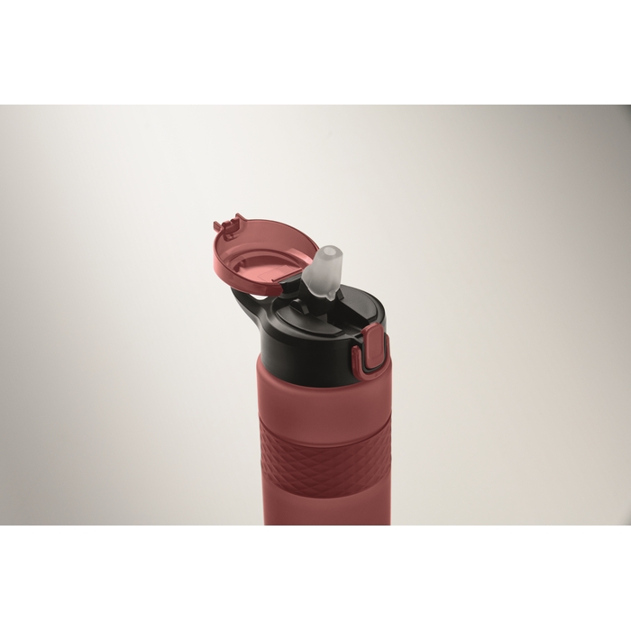 Láhev na pití z RPET, se silikonovým úchopem, odklápěcím víčkem z PP a bezpečnostním zámkem. Včetně integrovaného brčka. Objem 700 ml.Rozměry: 10,8 x 7,5 x 22,4cm