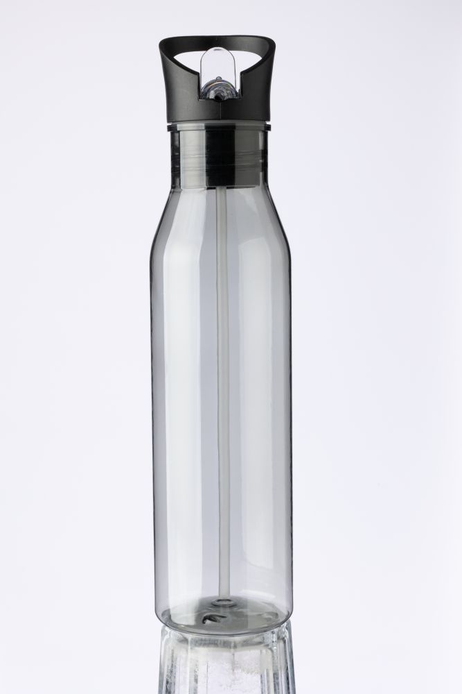 Láhev na pití rPET se sklopnou hubicí a brčkem uvnitř. Nosné poutko na horní straně PP víka. Hromadně balené s hedvábným papírem. Materiál: RPET Rozměry: 7 x 29 cm