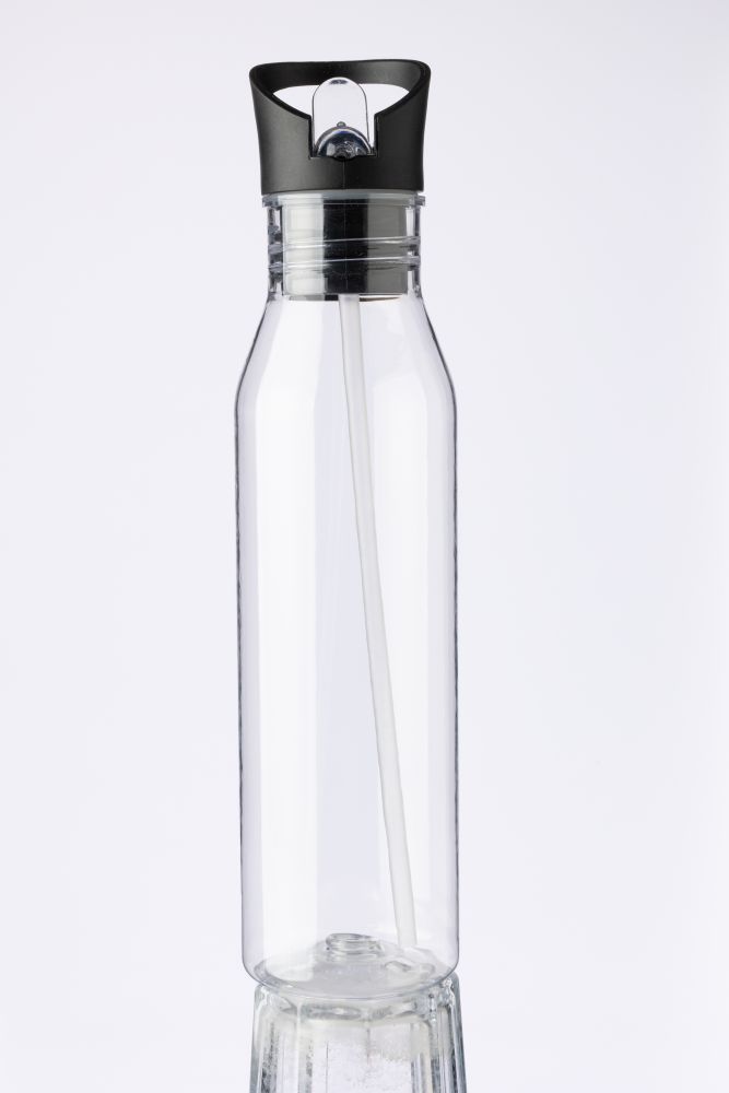 Láhev na pití rPET se sklopnou hubicí a brčkem uvnitř. Nosné poutko na horní straně PP víka. Hromadně balené s hedvábným papírem. Materiál: RPET Rozměry: 7 x 29 cm