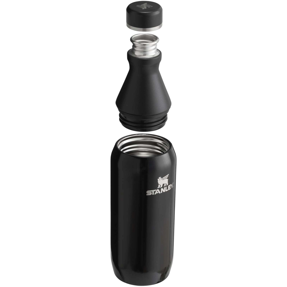 Láhev na vodu o objemu 350 ml je navržena pro celodenní hydrataci, kombinuje pohodlí a výkon. Vyrobena z 90 % z recyklované nerezové oceli. Má dvoudílné víčko – jedno pro snadné popíjení a druhé pro přidání ledu a bezproblémové čištění. Hrdlo je vyrobeno z jednostěnné nerezové oceli s plastovou přírubou se závitem a bezpečnostním tlakovým těsněním, aby se zabránilo úniku tekutin. Tělo má dvojitou vakuovou izolaci, která zajišťuje, že nápoje zůstanou v dokonalé teplotě po celé hodiny. Odolná a promyšleně navržená, tato láhev je ideální pro osvěžení, ať vás den zavede kamkoli. Rozměry: 6,55 x 21,9 x 6,55 cm