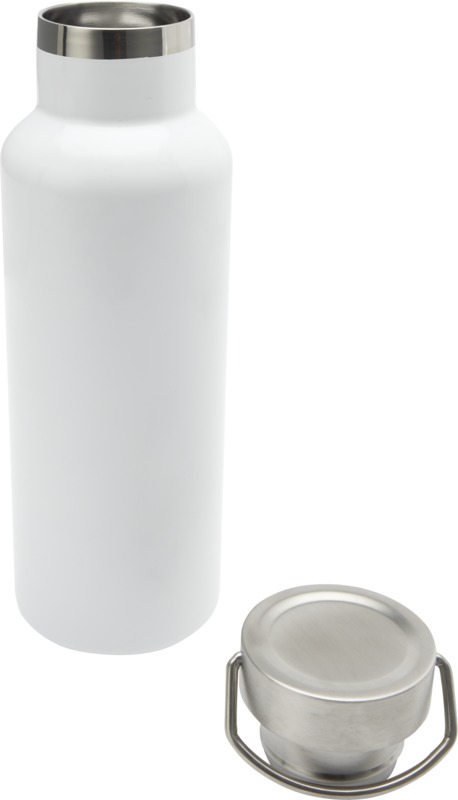 Dvoustěnná láhev na vodu z recyklované nerezové oceli se šroubovacím víčkem. Nepropustná, objem 500 ml. Dodáváno v dárkové krabičce. Rozměry: O 4,8 × × 7,2 × 20 cm.