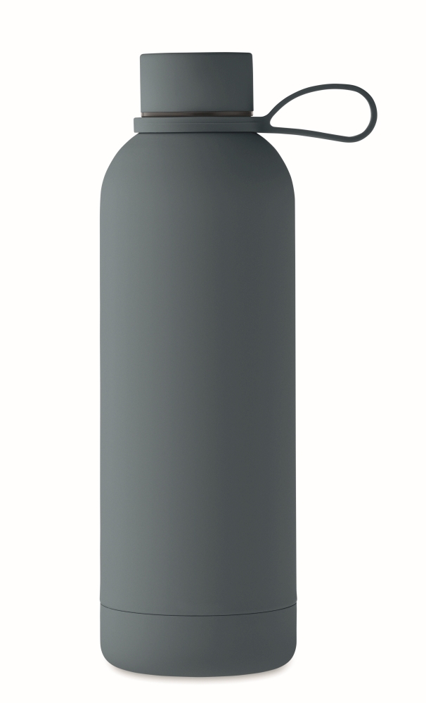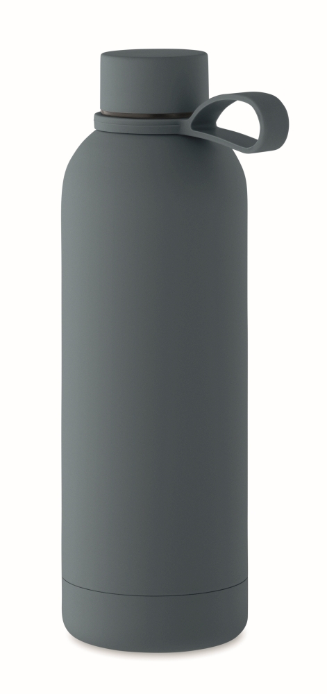 Dvoustěnná izolační láhev z recyklované nerezové oceli (90 % recyklované nerezové oceli a 10 % nerezové oceli) s gumovou povrchovou úpravou a silikonovým poutkem. Objem: 500 ml. Rozměry: O 7 x 22,5 cm. Materiál: nerezová ocel