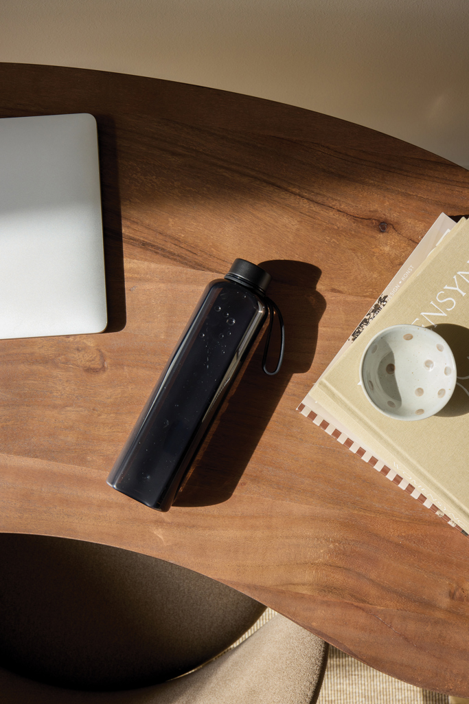 Stylová láhev na vodu s praktickou rukojetí. Ideální pro každou příležitost, ať už v kanceláři nebo v posilovně. Láhev má jedinečný, štíhlý a plochý design, který jí dodává nejen moderní a elegantní vzhled, ale také umožňuje snadné uložení do tašek a batohů, aniž by zabírala zbytečné místo. Je vyrobena z recyklovaného PET materiálu a má objem 550 ml. Lze mýt pouze ručně. Pouze pro studené nápoje. Tento výrobek obsahuje 85 % recyklovaného PET. Rozměry: 6.3 x 5 x 24.2 cm