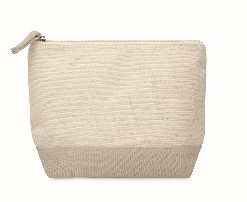 Kosmetická taštička z bavlny s barevným dnem a ladícím zipem. 340 gr/m2. Rozměry: 21,5 x 5 x 15 cm. Materiál: bavlna