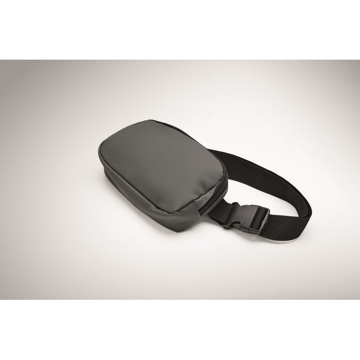 Ledvinka nebo crossbody taštička z měkkého PU s podšívkou z 210D RPET polyesteru. Jedna hlavní kapsa na zip, jedna zadní kapsa na zip a vnitřní síťovaná přihrádka.Rozměry: 22 x 5 x 15cm
