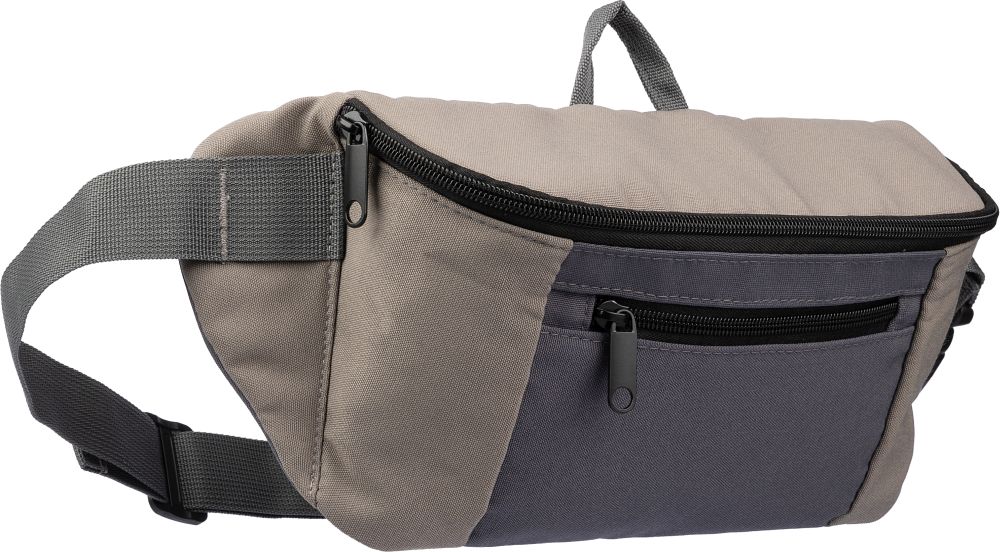 Polyesterová ledvinka s PU podšívkou a PE pěnou (3 mm). Velká kapsa na zip na horní straně a kapsa na zip na přední straně. Nastavitelný popruh s přezkou. Materiál: polyester Rozměry: 27 x 2,5 x 15,8 cm