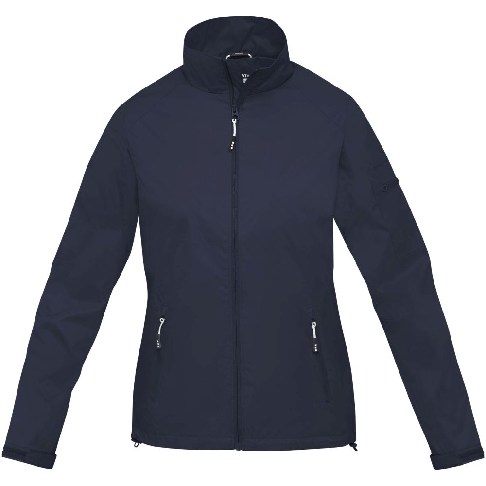 Lehká dámská bunda, značka Elevate. Bunda má voděodolnost 2000 mm a prodyšnost 2000 g/m2, kapsu na rukávu, vnitřní kapsu, přední kapsy se zipem, větrací otvory s matnými očky v podpaží, nastavitelné manžety se zapínáním na suchý zip, nastavitelnou stahovací šňůrku se zdrhovadlem ve spodním lemu, táhla zipu s příjemným povrchem, gumové poutko na zavěšení s logem. Nylonový kepr 320T 100% nylon, 133 g/m2, Lining, Polyesterový taft 210T 100% polyester, 60 g/m2.
