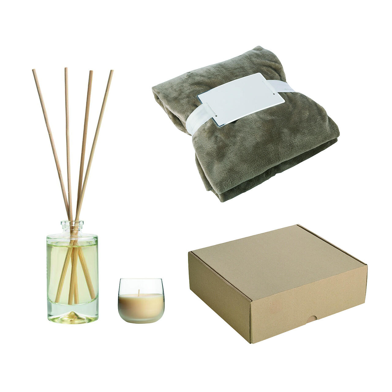 Dárková sada obsahuje fleecovou deku o rozměru 120 × 150 cm, kterou lze vyšít Vaším logem. Dále sada obsahuje vonný difuzér s vůní spa garden a vonnou svíčku s vůní vanilky. Difuzér i svíčku lze potisknout tampontiskem T3 ve velikosti 20 × 20 mm. Dárkovou krabici lze potisknout sítotiskem jednou barvou přes celé horní víko. Nebo s dodacím termínem 3–4 týdny lze krabici celoplošně plnobarevně potisknout, s minimálním odběrem 50 kusů. Rozměry: 37 × 34 × 11 cm.