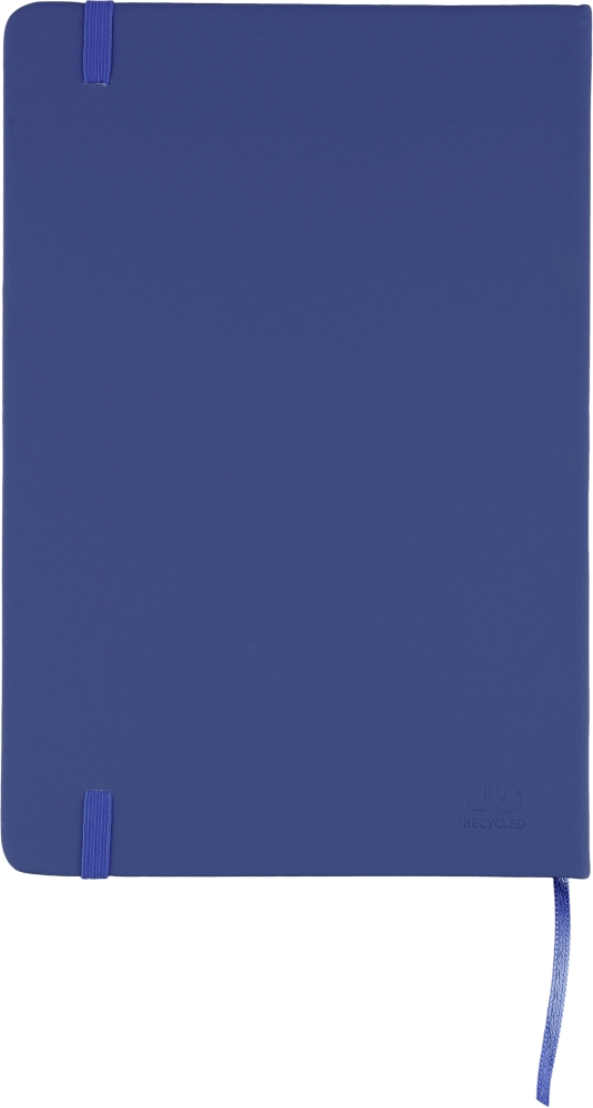Poznámkový blok s tvrdými deskami z rPET PU, obsahující 80 linkovaných stran (70 g/m2). Obsahuje gumičku a stužku v odpovídající barvě. Obsahuje reliéfní recyklované logo na zadní straně. Rozměry: 21 x 14 x 1,2 cm