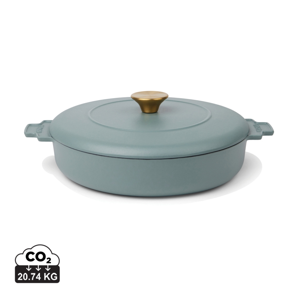 Litinová pánev řady Monte Heritage Series je vyrobena z masivní litiny a potažena smaltem. Pánev má robustní rukojeť, která zajišťuje bezpečné a pohodlné používání. Vnitřní část pánve je opatřena černým smaltem, který se vyznačuje mírně hrubším povrchem s
