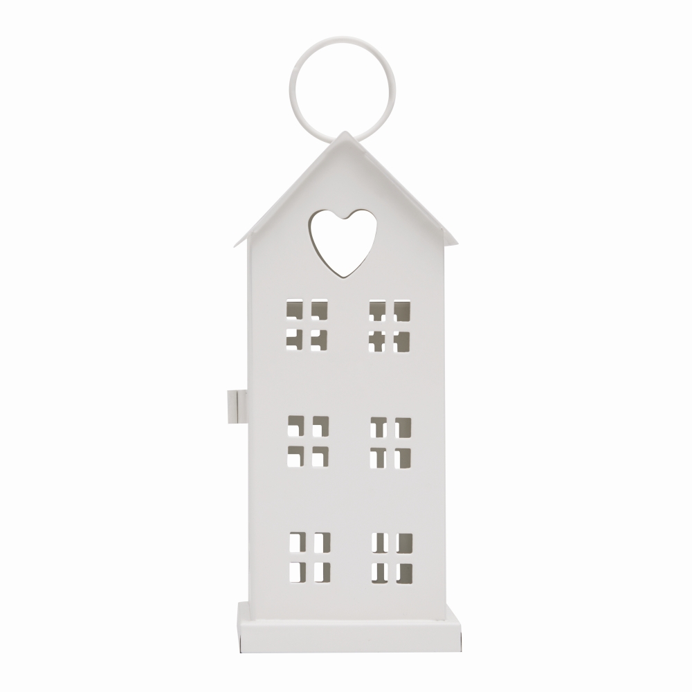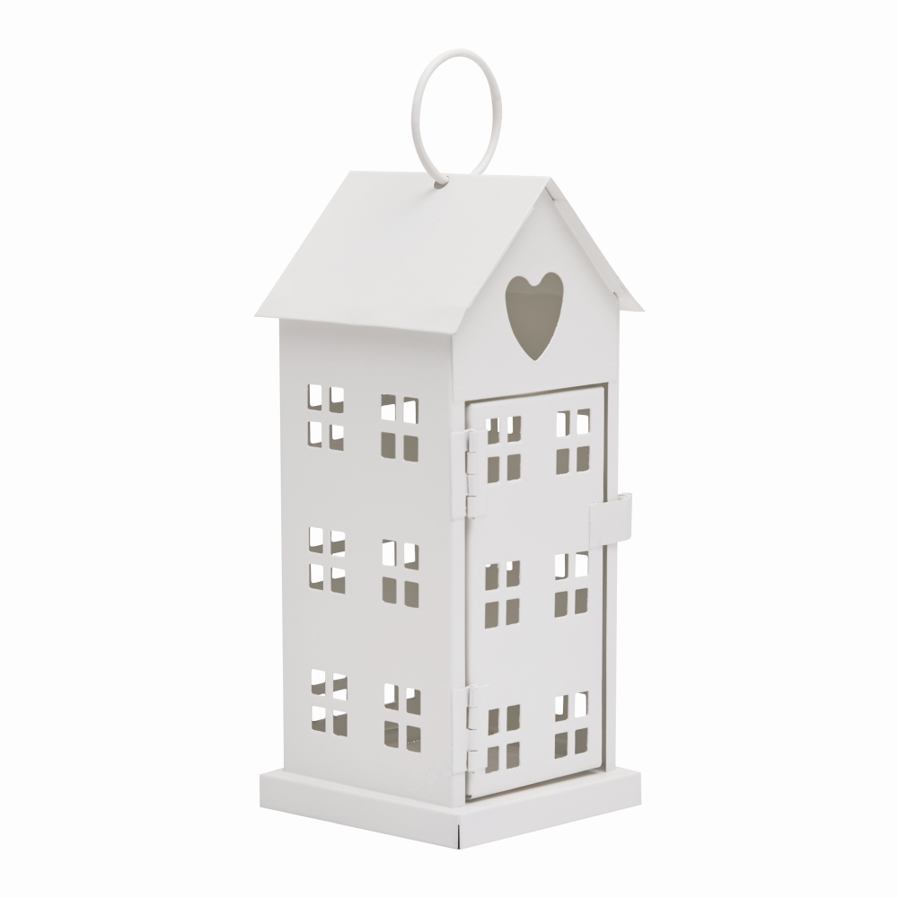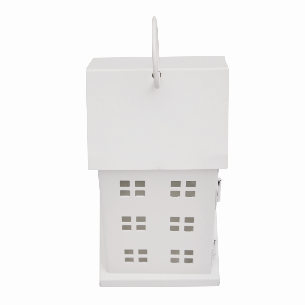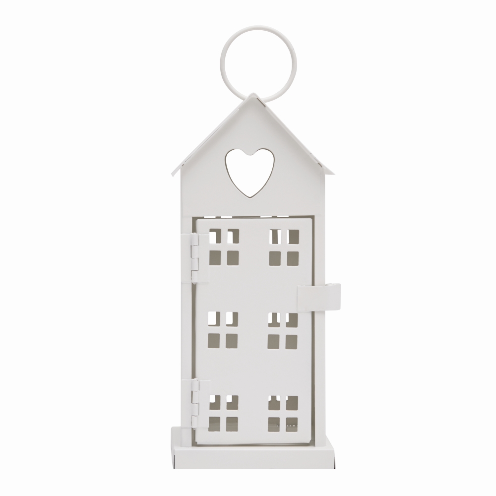 Kovový domeček se 6 okny na každé straně, dveře lze otevřít a naplnit čajovou svíčkou nebo pohádkovými světly (nejsou součástí dodávky), poutko na střeše. Rozměry: 8 x 8 x 18 cm