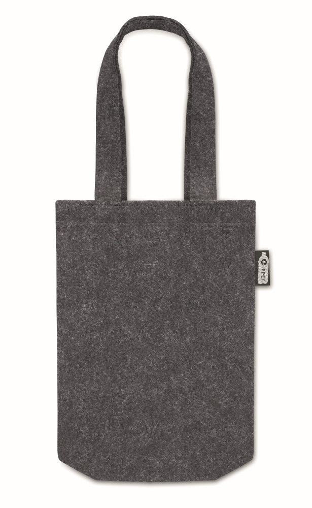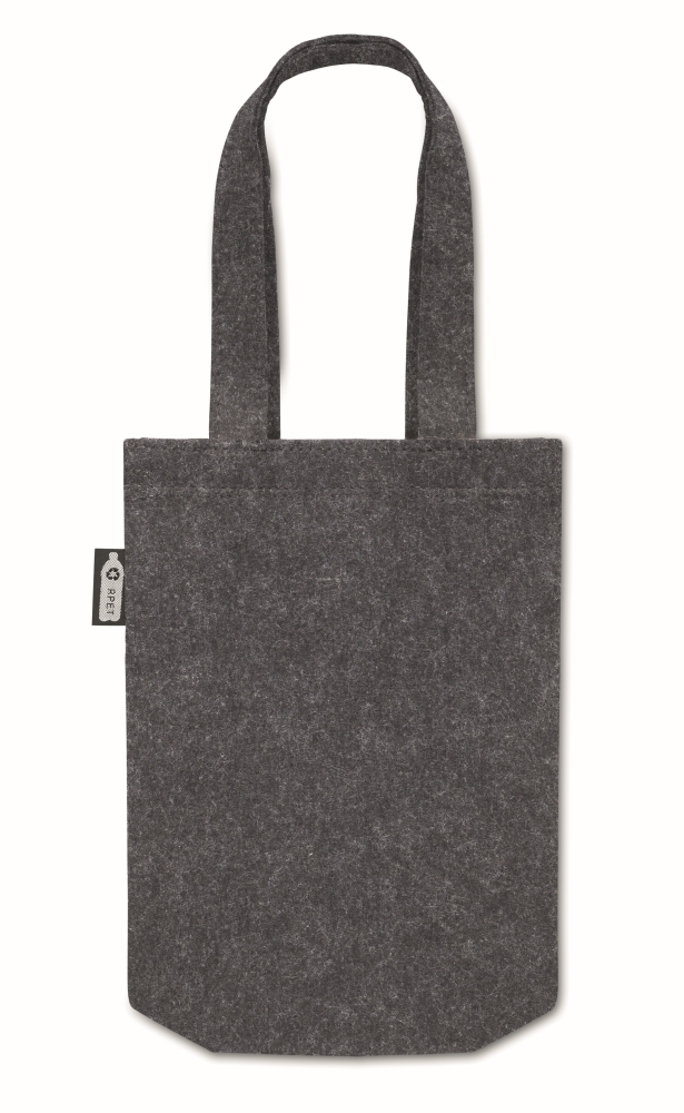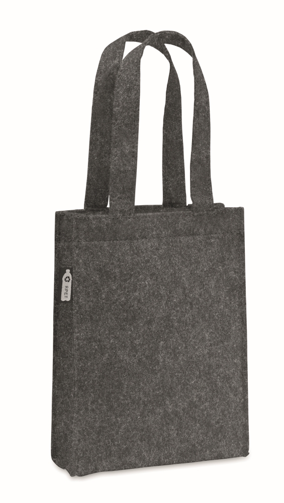 Malá plstěná RPET taška na dárky nebo dobroty s krátkými uchy a spodními klínky. Tloušťka plsti: 1 mm. Rozměry: 17 x 6 x 22 cm
