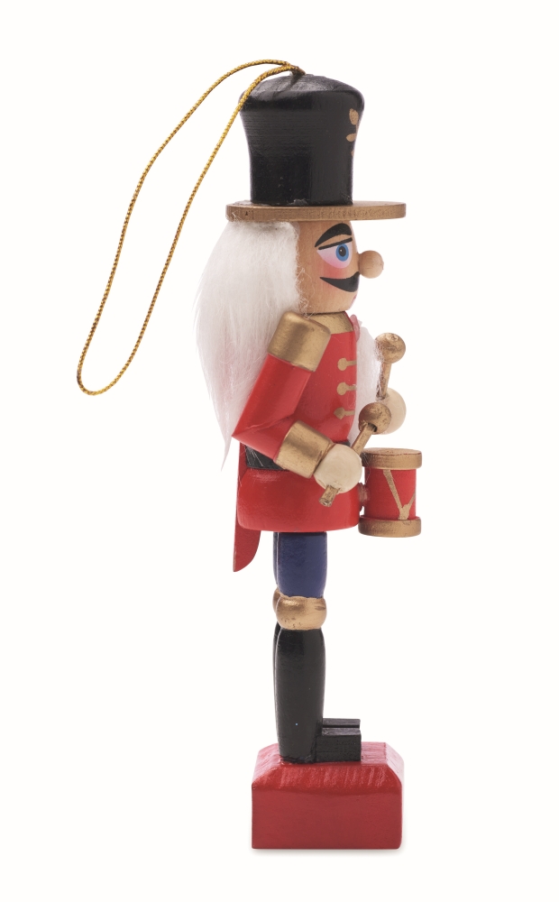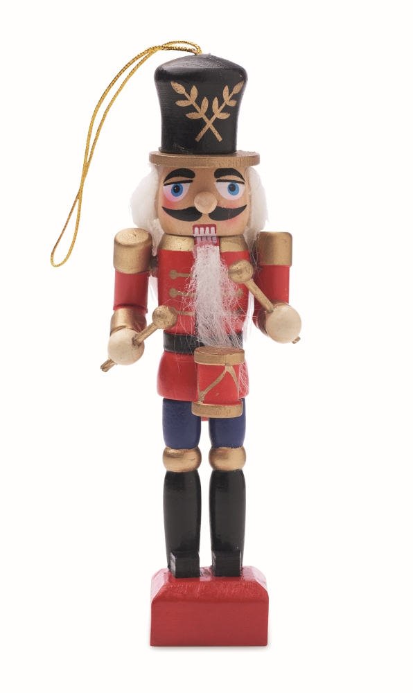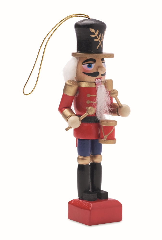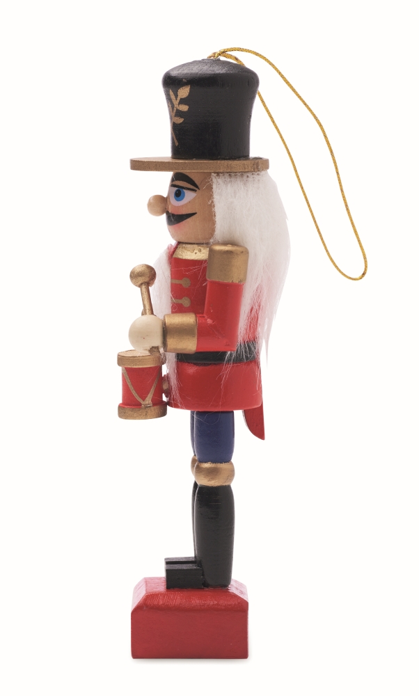 Malá závěsná vánoční ozdoba ze dřeva v podobě Louskáčka. Rozměry: 2,7 x 2,7 x 13,2 cm. Materiál: dřevo