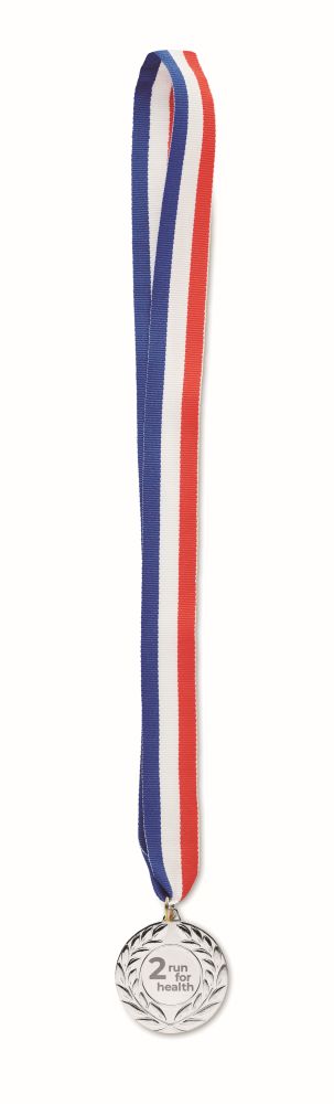 Železná medaile s polyesterovou šňůrkou v modré, bílé a červené barvě. Průměr 5 cm Rozměry: O5 x 0,2cm
