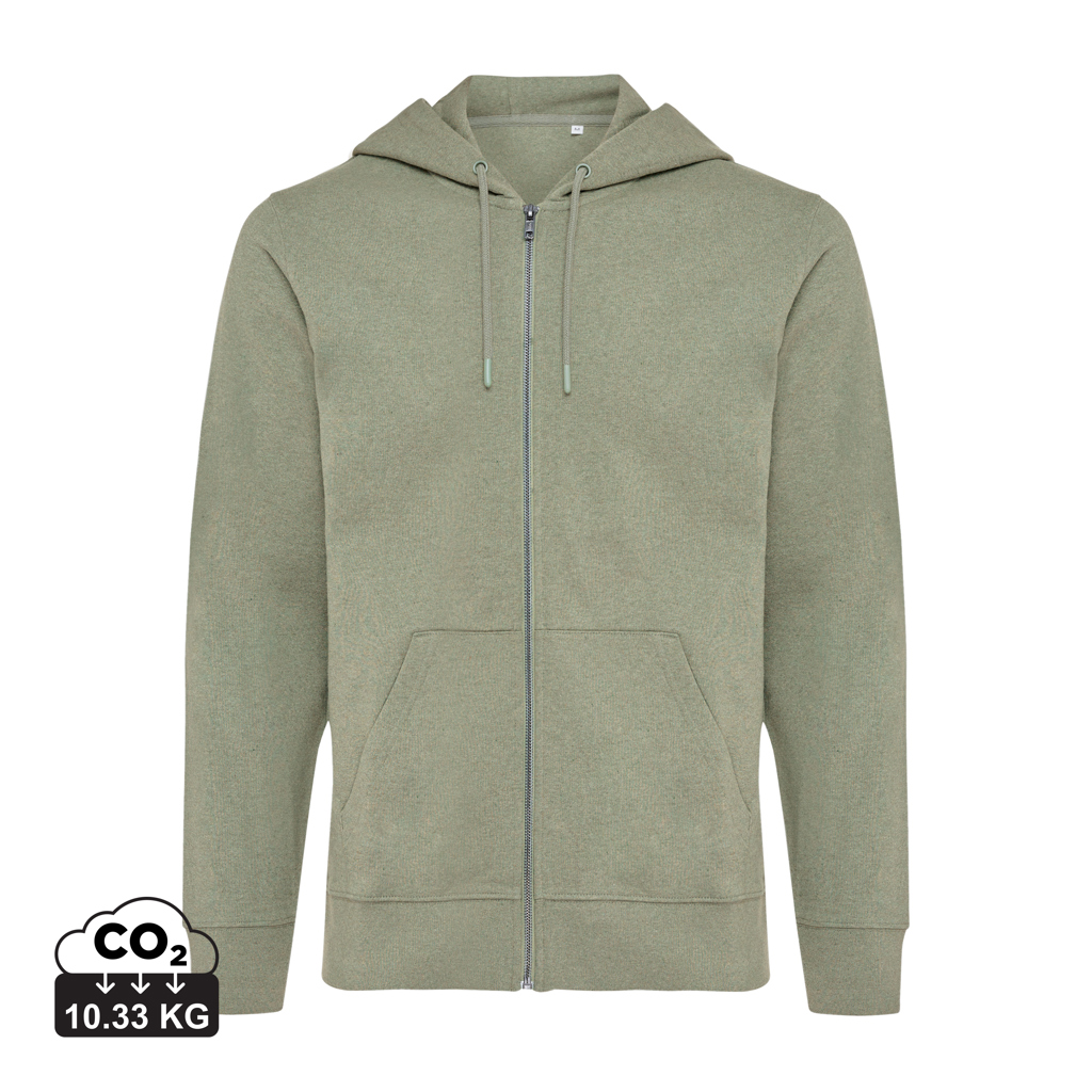 Mikina na zip s kapucí, recyklovaná bavlna, zelená, M
