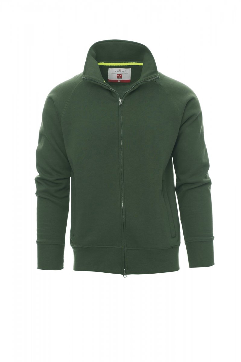 Pánská mikina s dlouhým raglánovým rukávem, celopropínací s oboustranným kovovým zipem, stojáček, dvě kapsy na zip, žebrované manžety a spodní lem, 70% česaná bavlna – 30% polyester, 300 gsm. Doporučená technologie tisku: sítotisk S3, výšivka.