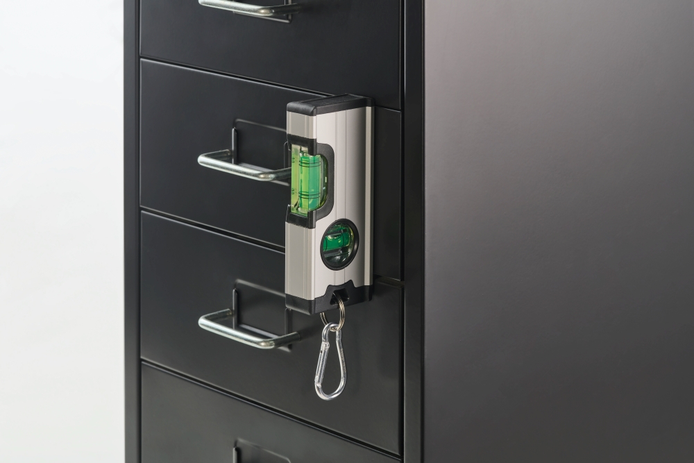 Mini magnetická vodováha v hliníkovém pouzdře s karabinou. Karabina není určena pro lezení (neprofesionální použití). Rozměry: 12 x 5 x 2,2 cm