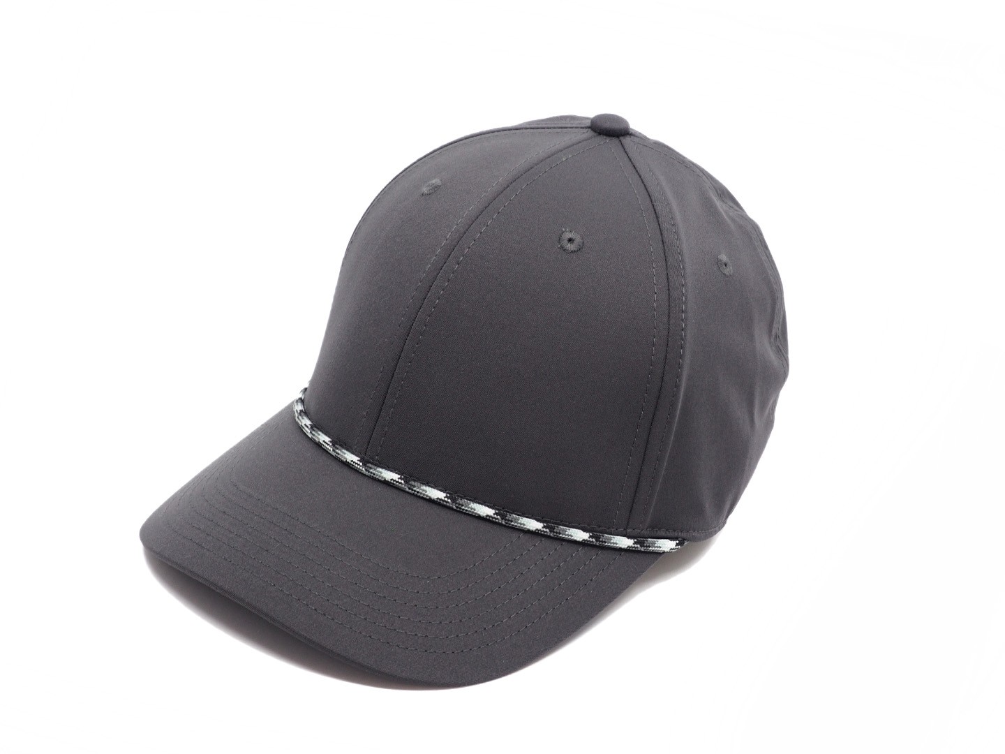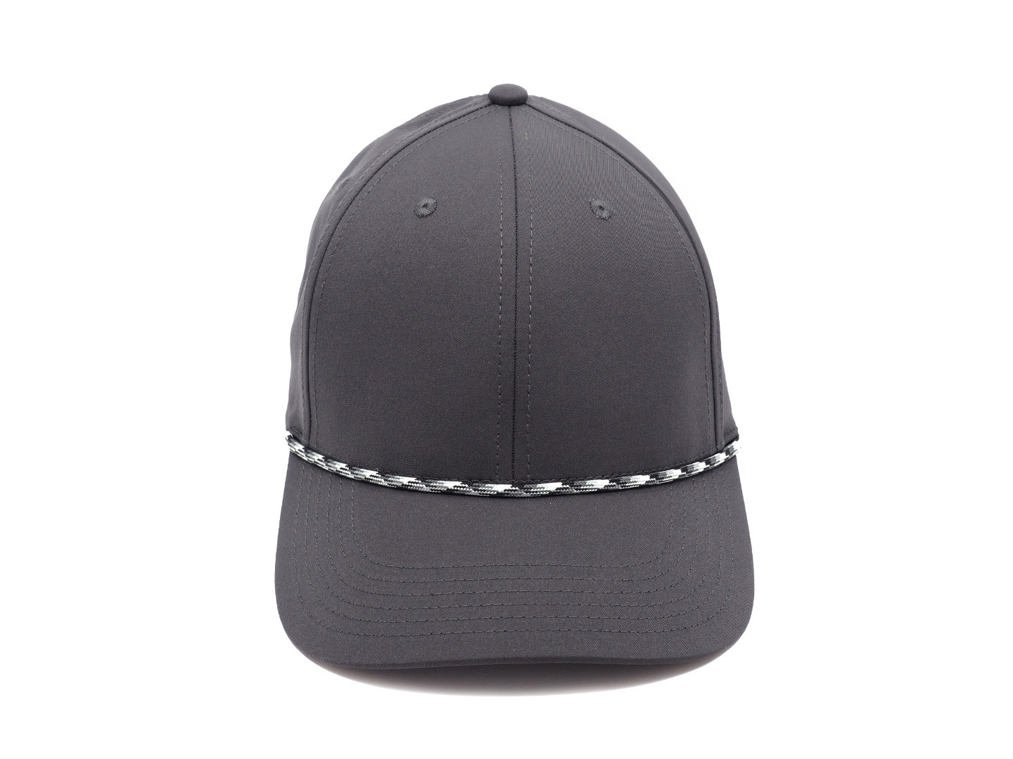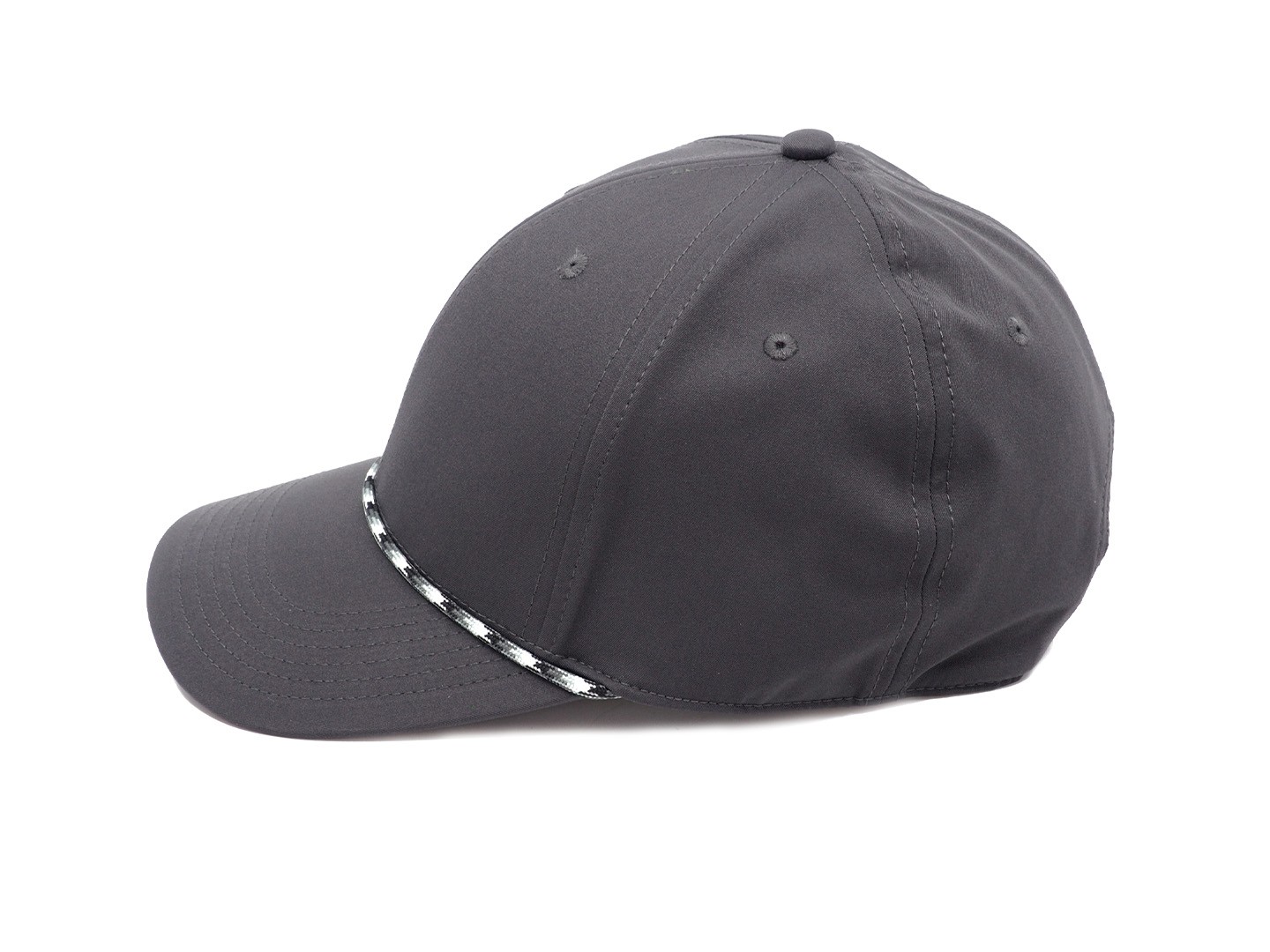 Moderní stylová kšiltovka vyrobená ze 100% elastického polyesteru s ozdobnou šňůrkou na kšiltu. Materiál je velmi měkký, příjemný a odvádí vlhkost. Je to nový trendy materiál. Čepice má nízký profil, zahnutý kšilt a zapínání je na suchý zip, horní část je ozdobná guma. Kšiltovka je 6 panelová.