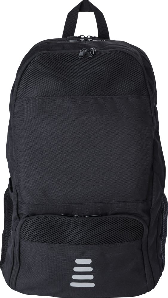 Multifunkční batoh z RPET polyesteru. Uvnitř 210D, z venku 600D RPET. Batoh má kapsu na rakety, bezpečnou kapsu, kapsu na boty, přihrádku na notebook, přihrádku na láhev. Batoh má polstrované nastavitelné popruhy a povrch je vodoodpudivý. Rozměry: 32 x 24 x 50 cm