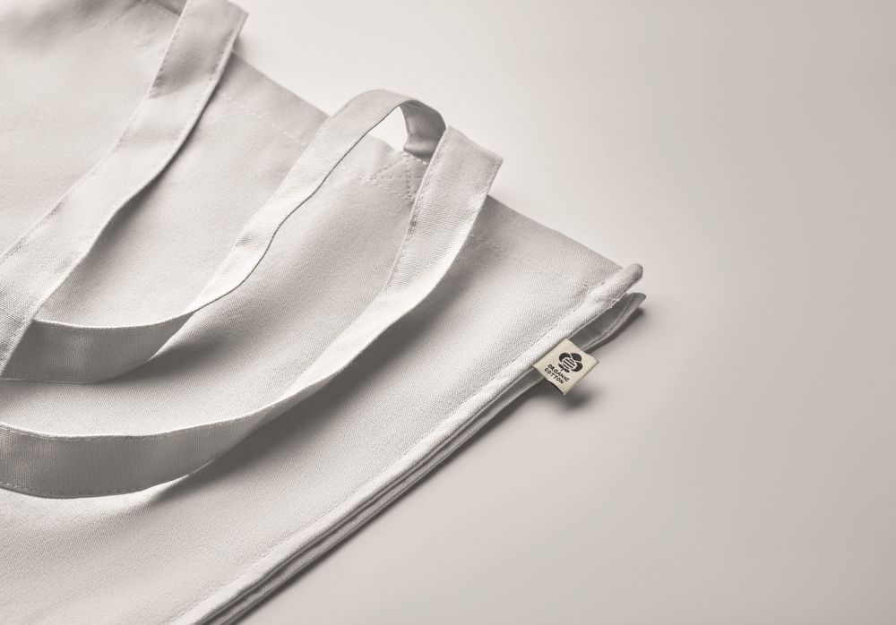 Nákupní taška z organické bavlny s dlouhými uchy a klínem. 220 g/m2. Rozměry: 38x9x42cm