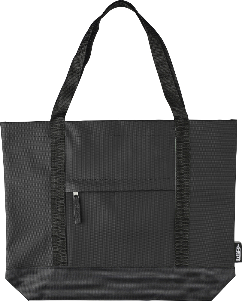 Polyesterová taška rPET (600D) s oboustranným PU zátěrem pro voděodolnost. Má přední přihrádku na zip, malou vnitřní kapsu na zip a dlouhá ucha pro přenášení. Navržena s objemem 10 litrů a nosností 10 kg. Součástí je štítek rPET. Rozměry: 42 x 9,5 x 33 cm
