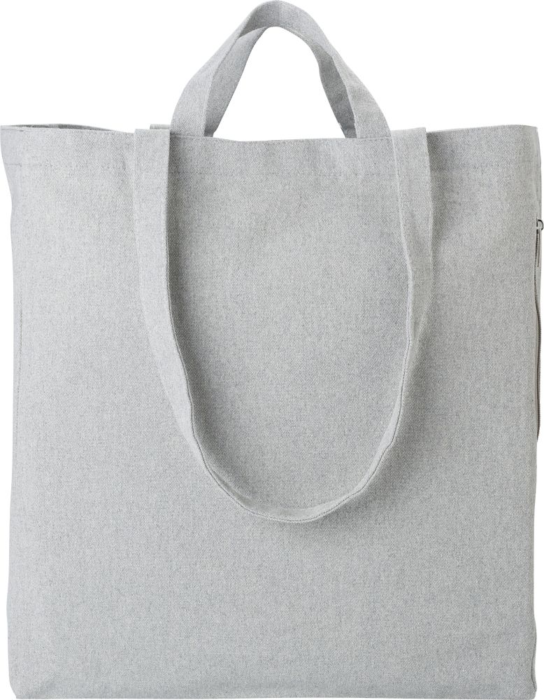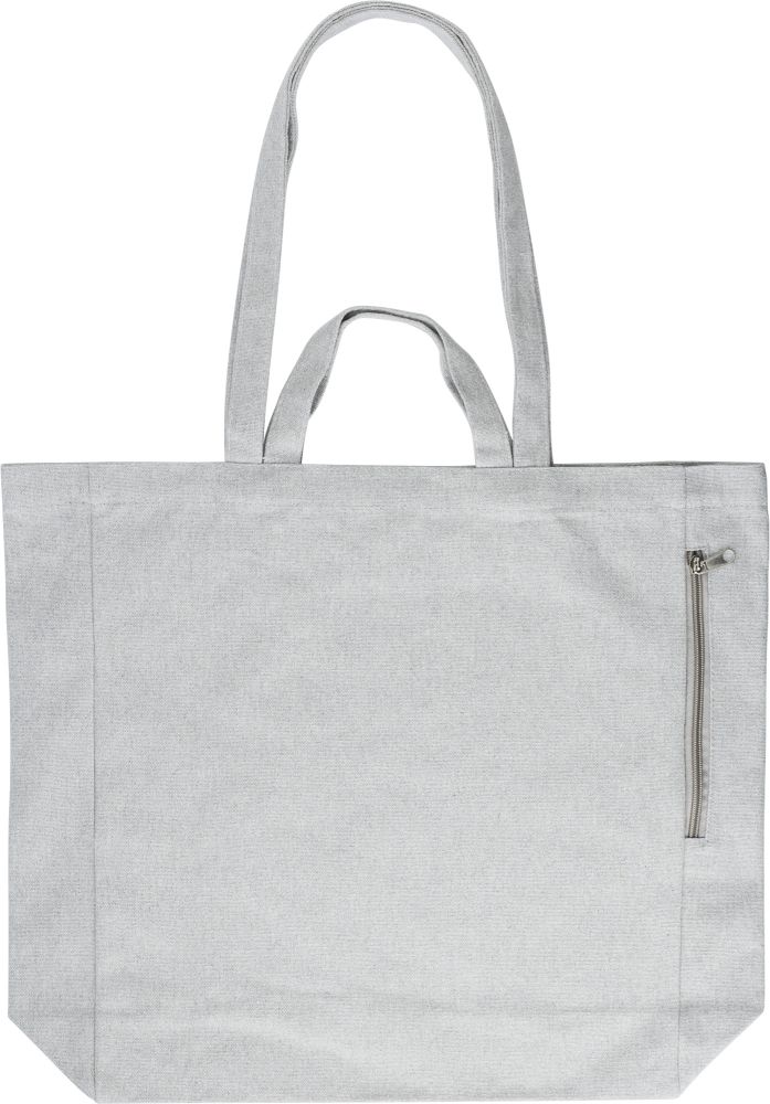 Nákupní taška s krátkými i dlouhými uchy. Taška je vyrobena z recyklované bavlny (300g/m). Na boční straně má kapsu na zip. Rozměry: 38 x 12 x 42 cm